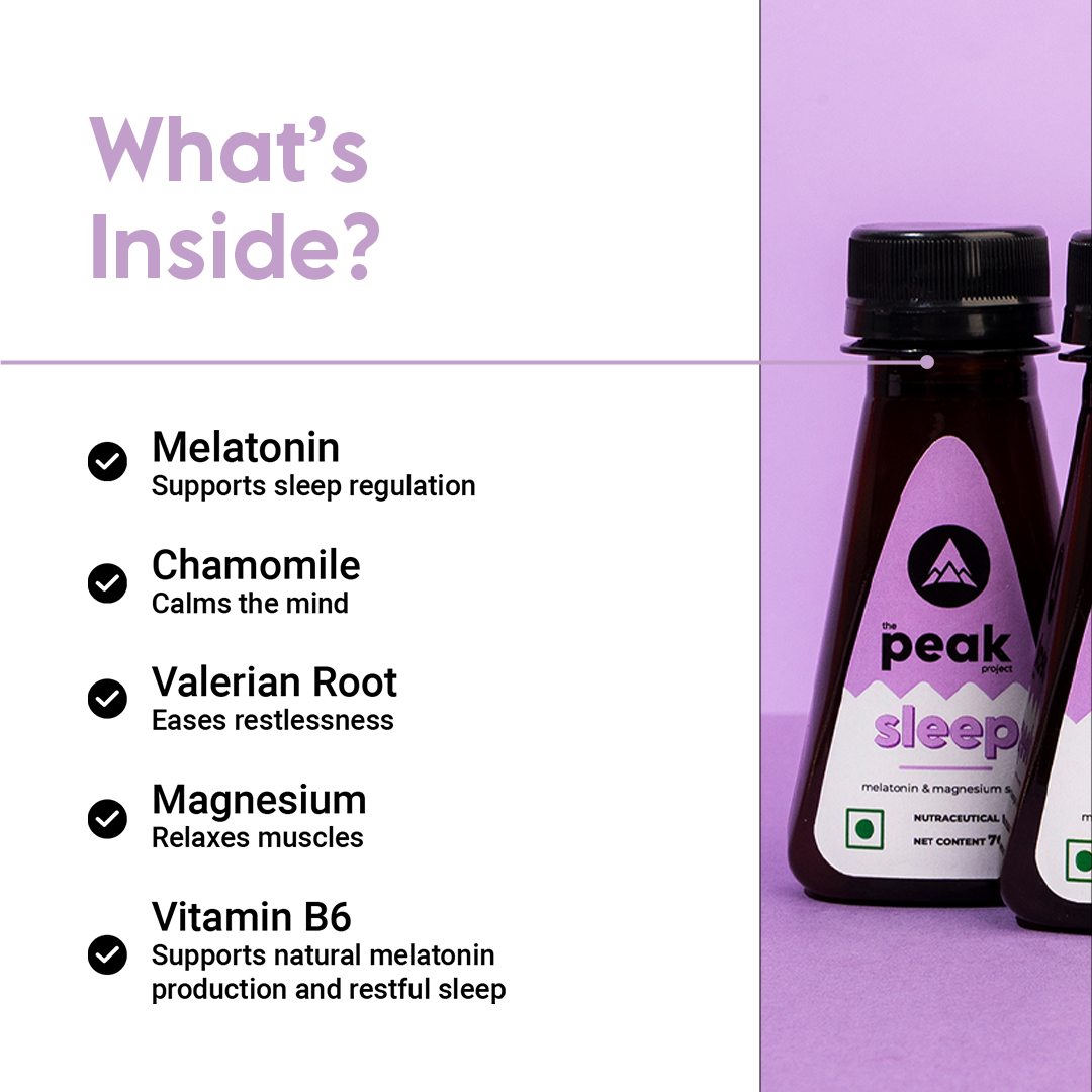 Consume a Peak Sleep shot about 30 minutes before bed. It supports relaxation, improves sleep quality, and promotes restful overnight recovery, helping you wake up refreshed.